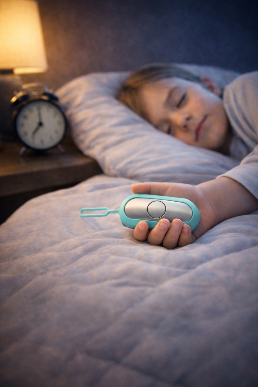 Most children feel calming effects within 30 seconds to 2 minutes of use. Parents report seeing visible relaxation — shoulders dropping, breathing slowing, tension releasing — almost immediately. For sleep, many kids fall asleep within 10-20 minutes while holding the device (compared to 1-2 hours of lying awake before). The beauty of CalmCarry is that the pulses are so subtle your child may not even feel them, but their nervous system responds regardless. Some children feel immediate relief, while others notice cumulative benefits after consistent use for 3-5 days.